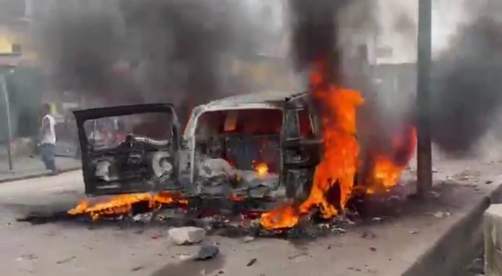 En réaction à cet incident, des motocyclistes en colère ont érigé des barricades sur la chaussée et incendié des pneus, paralysant totalement la circulation sur cet axe stratégique en direction du By-pass. Une jeep militaire a également été incendiée au cours des tensions, illustrant la gravité de la situation sur le terrain.